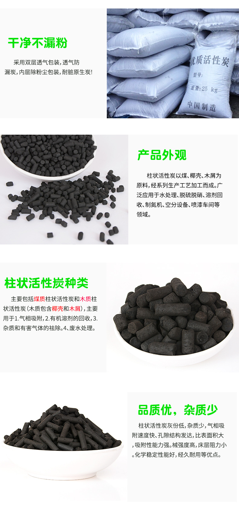 外观 圆柱状 材质 木屑,无烟煤 适用行业 化水净气类活性炭 活性炭吸附剂 高碘值