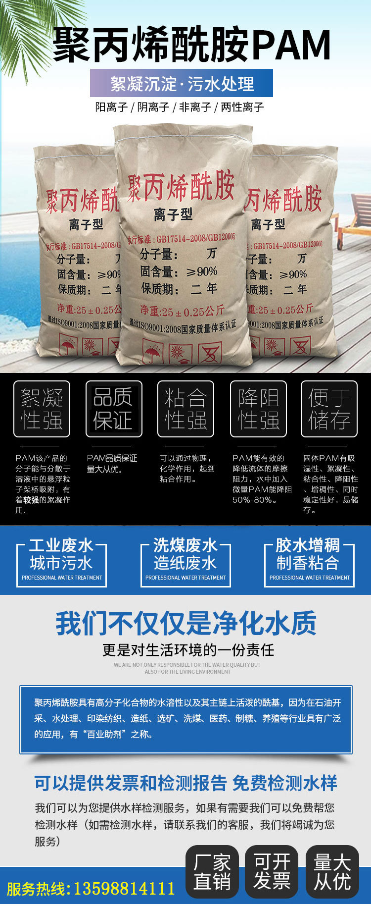 货号 17-2 名称 聚丙烯酰胺(PAM)系列 型号 25kg,50kg