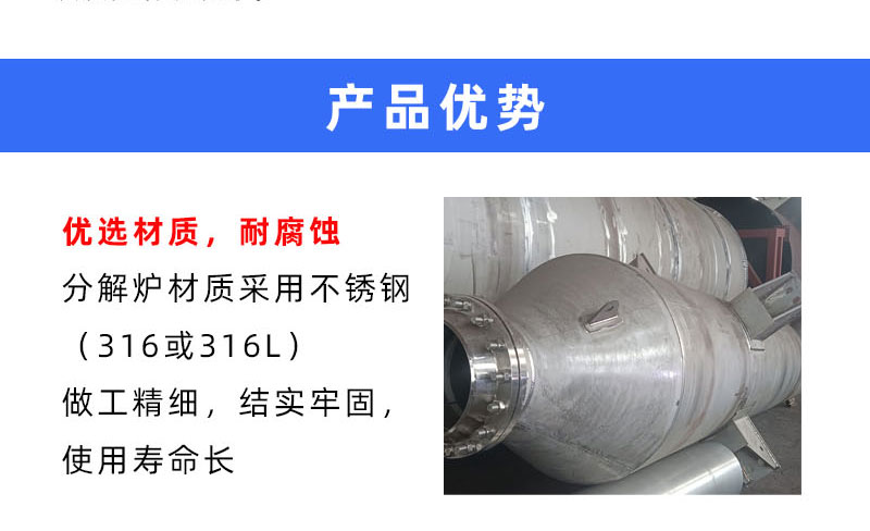 尿素热解炉制氨技术具有安全性高、占地面积小、响应速度快等优势,且无需压力容器,降低了运行风险。其热源可根据现场条件灵活选择,如电加热、高温烟气等,适用于新建或改造项目。