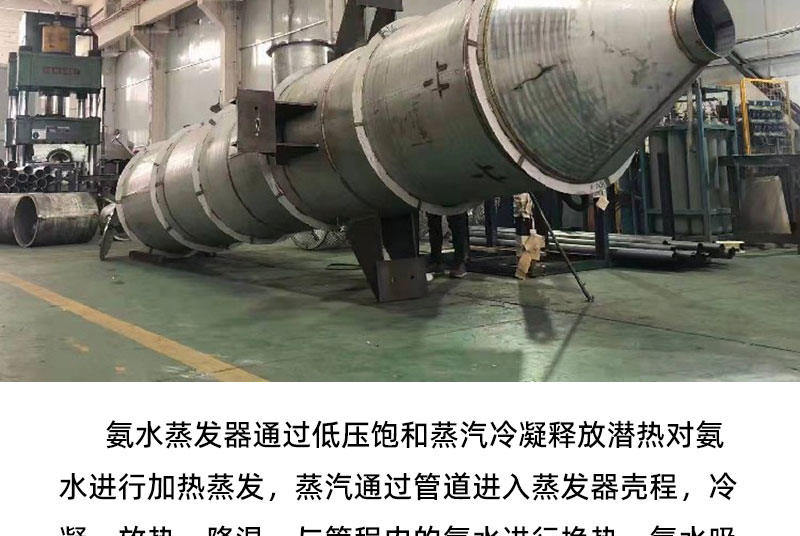 设备主体通常采用碳钢或不锈钢材质制造,内部设置列管式或盘管式换热器,蒸汽走管程,氨水走壳程,通过高效传热实现快速蒸发。氨水经计量泵输送至蒸发器顶部,均匀喷淋在换热管表面,在蒸汽加热下迅速汽化,气液混合物进入气液分离器,通过重力沉降或旋风分离技术分离出氨气,纯净氨气经出口输送至后续系统,残液则返回蒸发器循环利用。